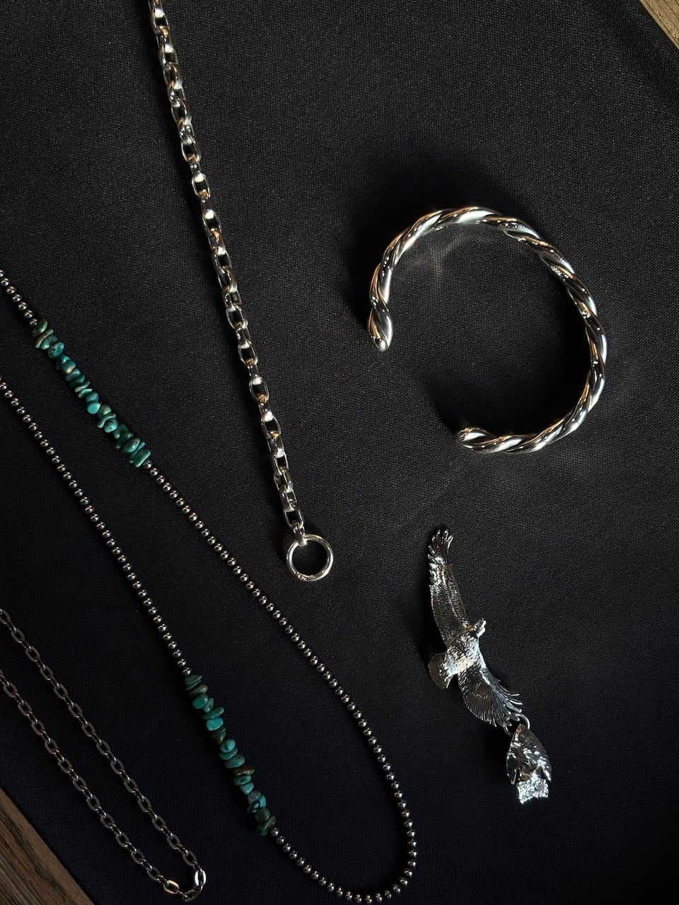 " 新作のご案内" 本製品は1点物です 決して同じ製品は誕生しません 作家のインスピレーションやその時の雰囲気で完成されてアートです!(特性をご理解ください) 極上のsilverアクセサリーを身につけてみませんか? 新たに登場したシルバー925製のアクセサリー、 metalは、あなたのスタイルをワンランクアップさせるアイテムです。 ◼︎シルバー925の高品質な素材を使用し、洗練されたデザインが特徴。 肌に優しい触り心地で、長時間の着用でもストレスを感じさせません。シンプルでありながら、存在感のあるデザインは、カジュアルな装いにもビジネスシーンにも幅広くマッチします。 ◼︎metalの特徴は、ダイナミックなフォルムにあります。さりげない曲線とスタイリッシュなラインが、あなたの個性を引き立てます。さらに、シルバー925特有の光沢感が、周囲の視線を集めることでしょう。 ◼︎商品仕様 metal(silver 925) × 1 仕上げ : mirror polish (磨き) TOP:材質 : シルバー925 イーグル : 真鍮(brass) hook : silver 925 size : 鎖 50cm (あずき0.65 sus.) ◼︎特別な wedding や記念日、お誕生日のお祝いや自分へのご褒美としても最適です。身に着けることで、心に特別なひとときをもたらしてくれるかもしれません。 個数は1点限りの特別販売となりますので、お早めのご購入をお勧めします。貴方の手元に、Gypsy 製品のmetalをぜひお迎えください! #metal#silver925 #アクセサリー #シルバー #ジュエリー #スタイル #個性 #特別品質