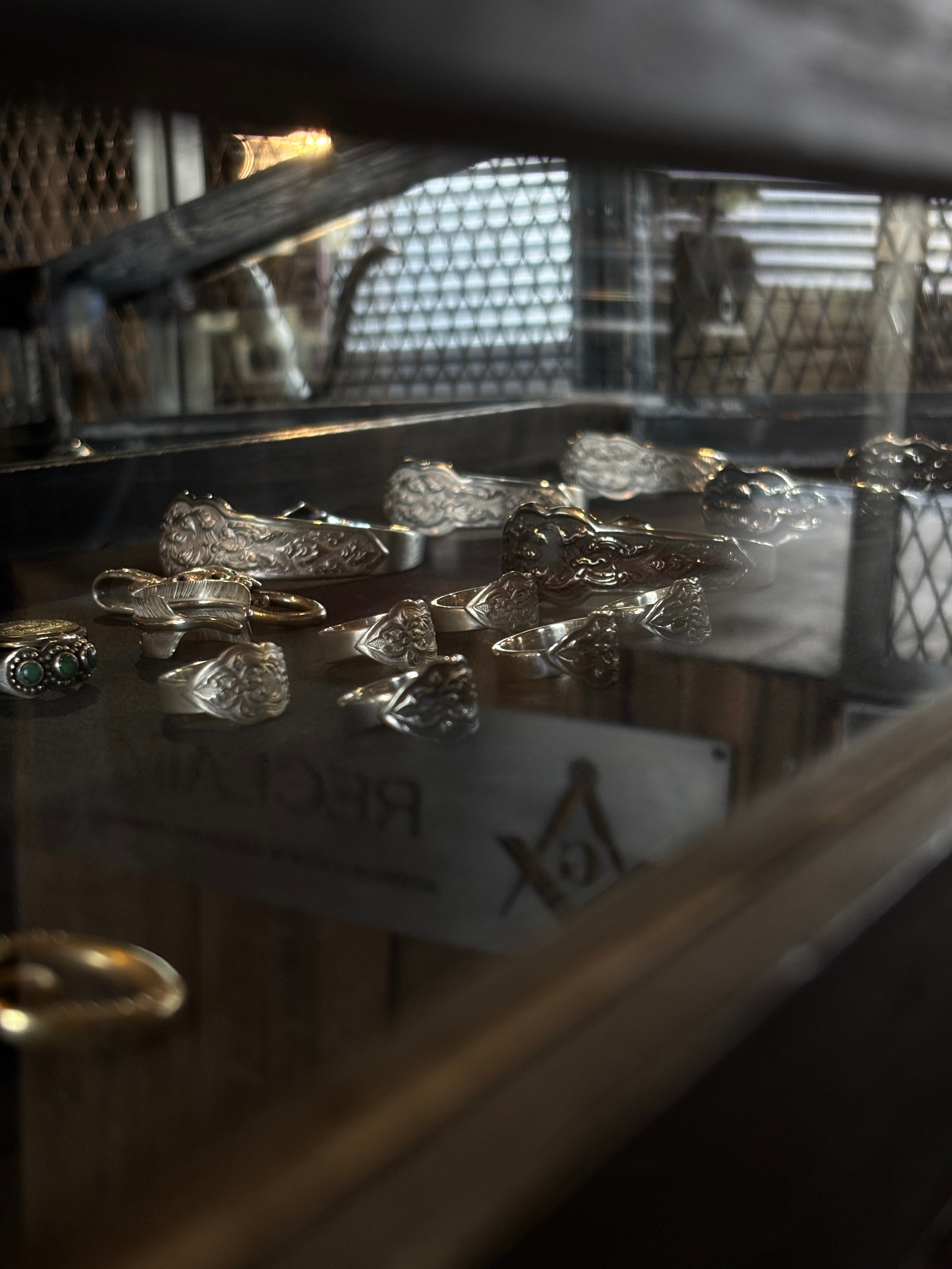 Antique bangle 『バングルとリング2点セット』 ▫︎Sterling silver925 ▫︎Color: Black / White ▫︎バングルsize : S . M .L ▫︎指輪 size : 12号 13号 14号 ※モデル着用 Size (M) 腕周り16.5cm タイの王室で式典などの際に来賓に向けて手作りされた伝統工芸品のカトラリーです。 シルバー925の重厚感のあるボディにタイの伝統的な模様が彫刻されています。 タイ・バンコクの老舗宝飾店Sam E jdwdllerが1本1本腕の立つ職人により仕上げた特別感のあるカトラリー! gypsy/mitsuru氏によってシルバーリング・シルバーバングルへと昇華させました! 是非、この特別なタイ王国の伝統×日本の職人による逸品をあなたの手に