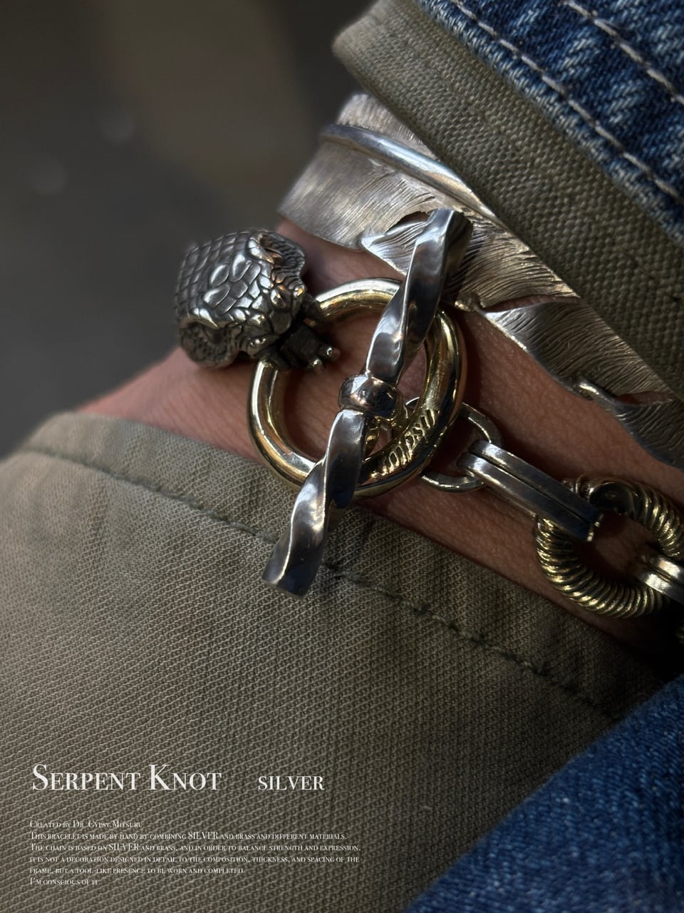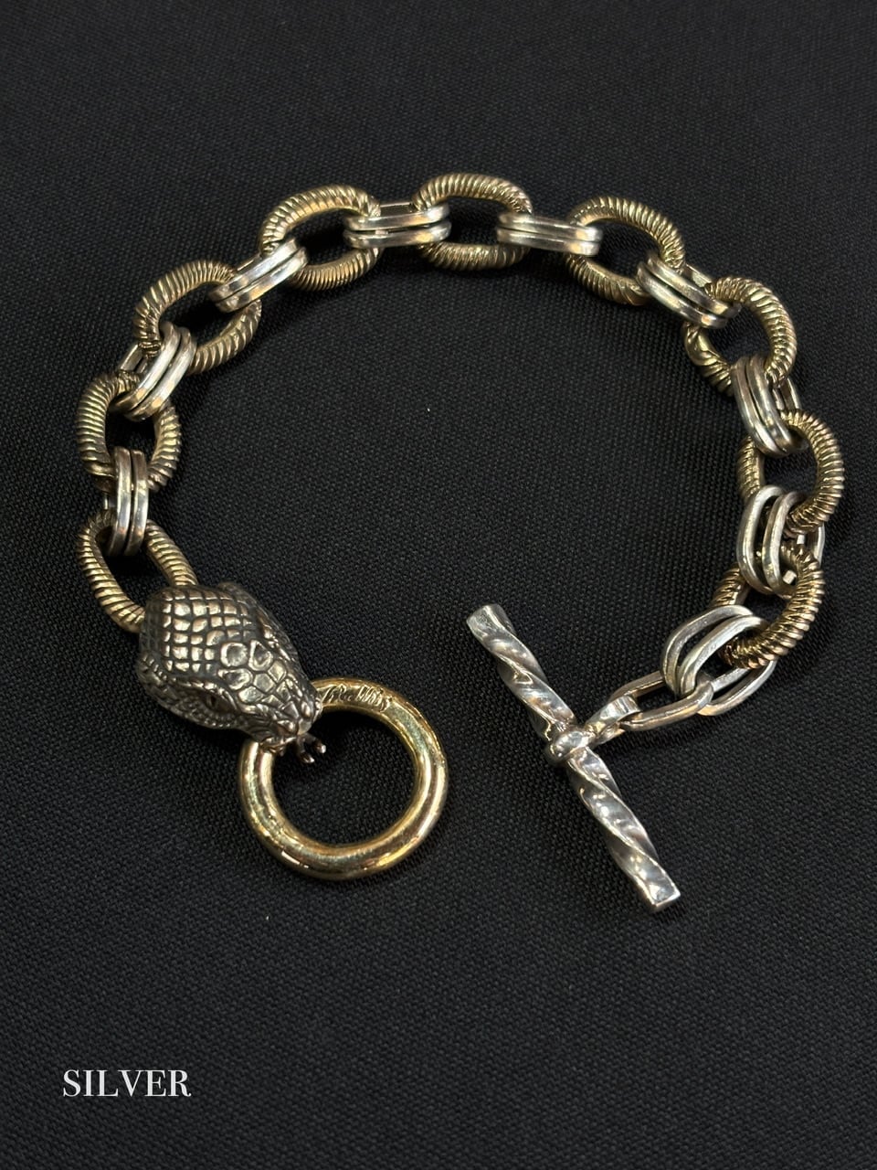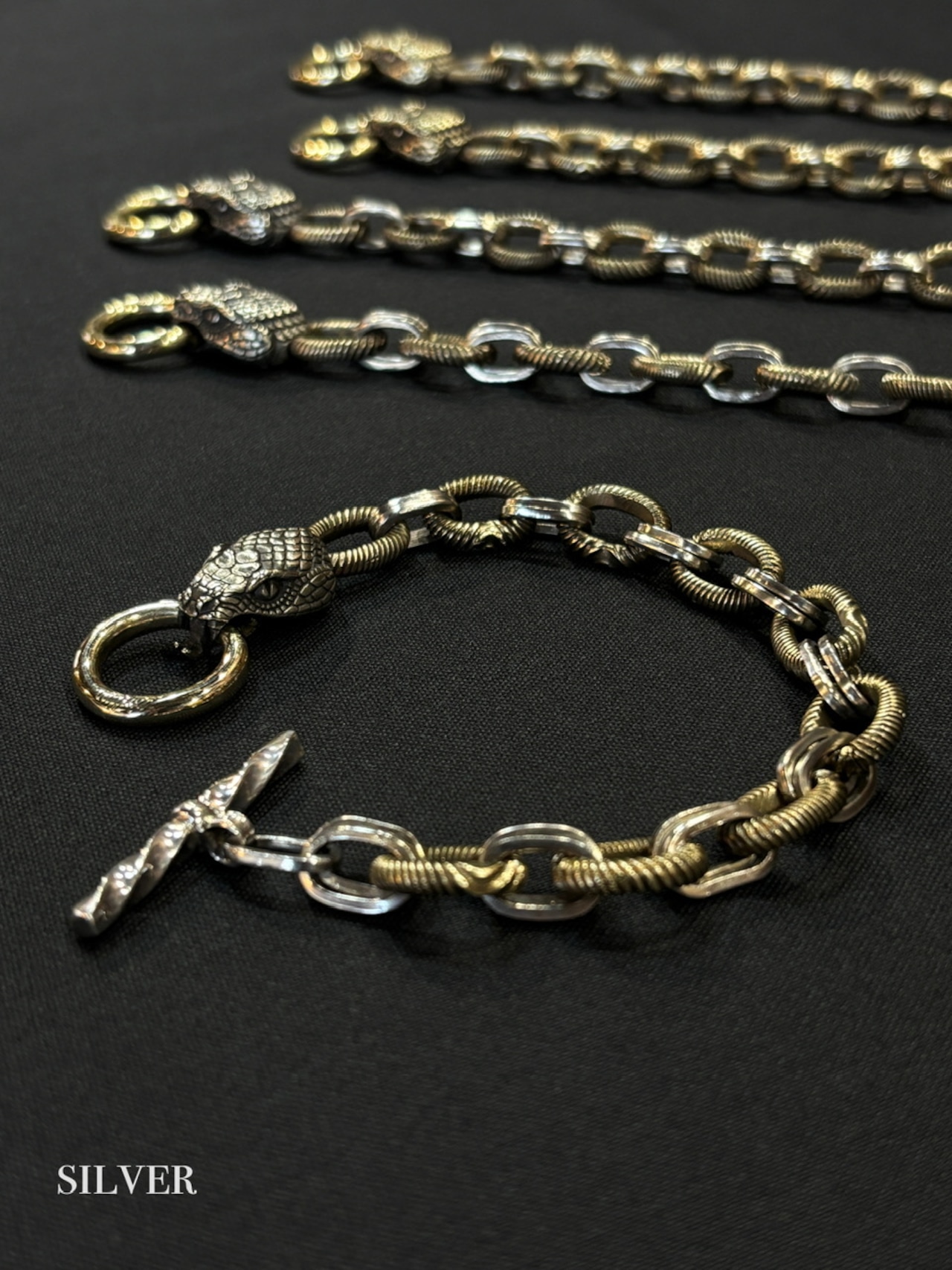 SILVERと真鍮、異なる素材をあえて組み合わせ一点一点、手作業で作り込んだブレスレット。