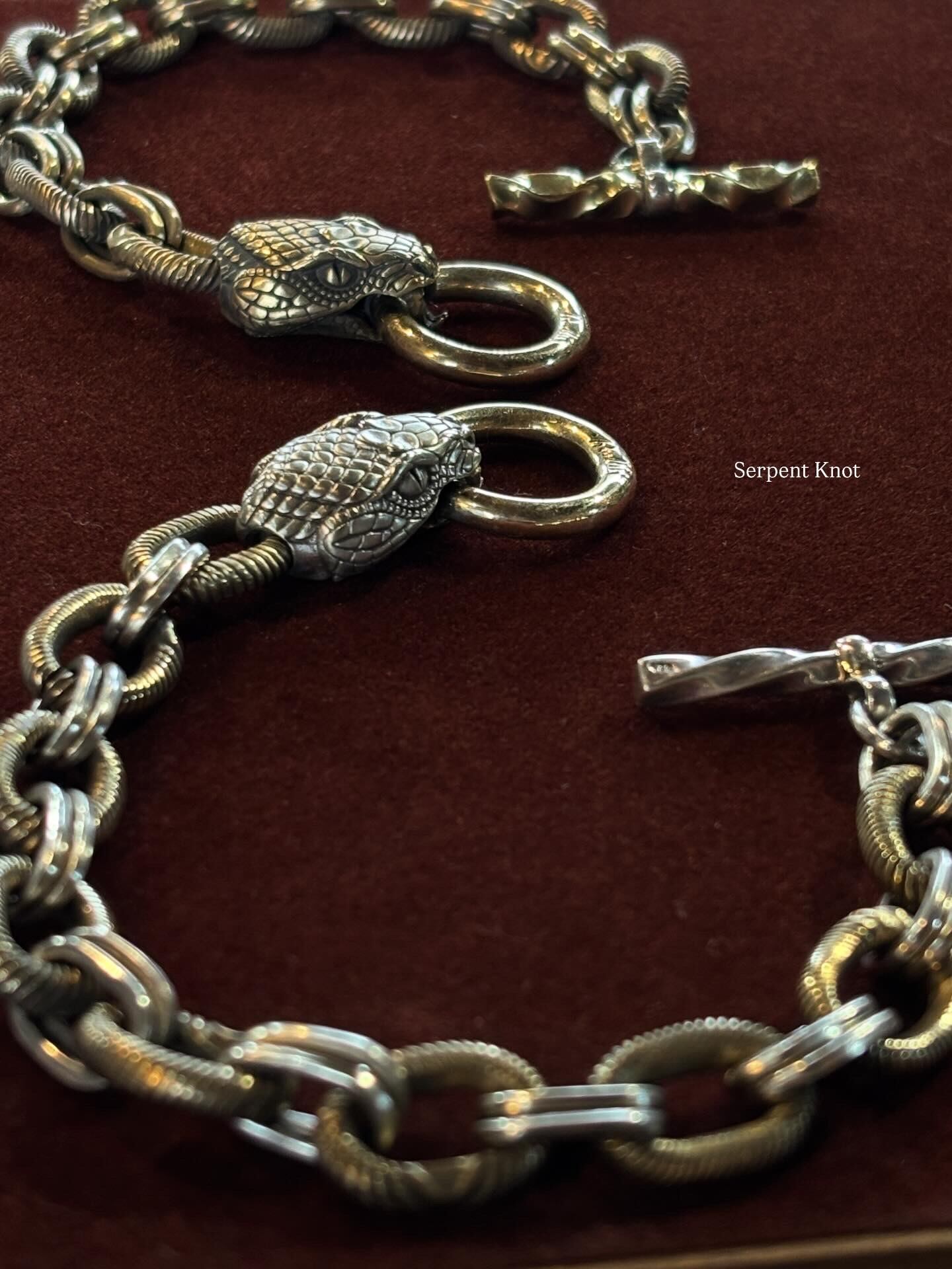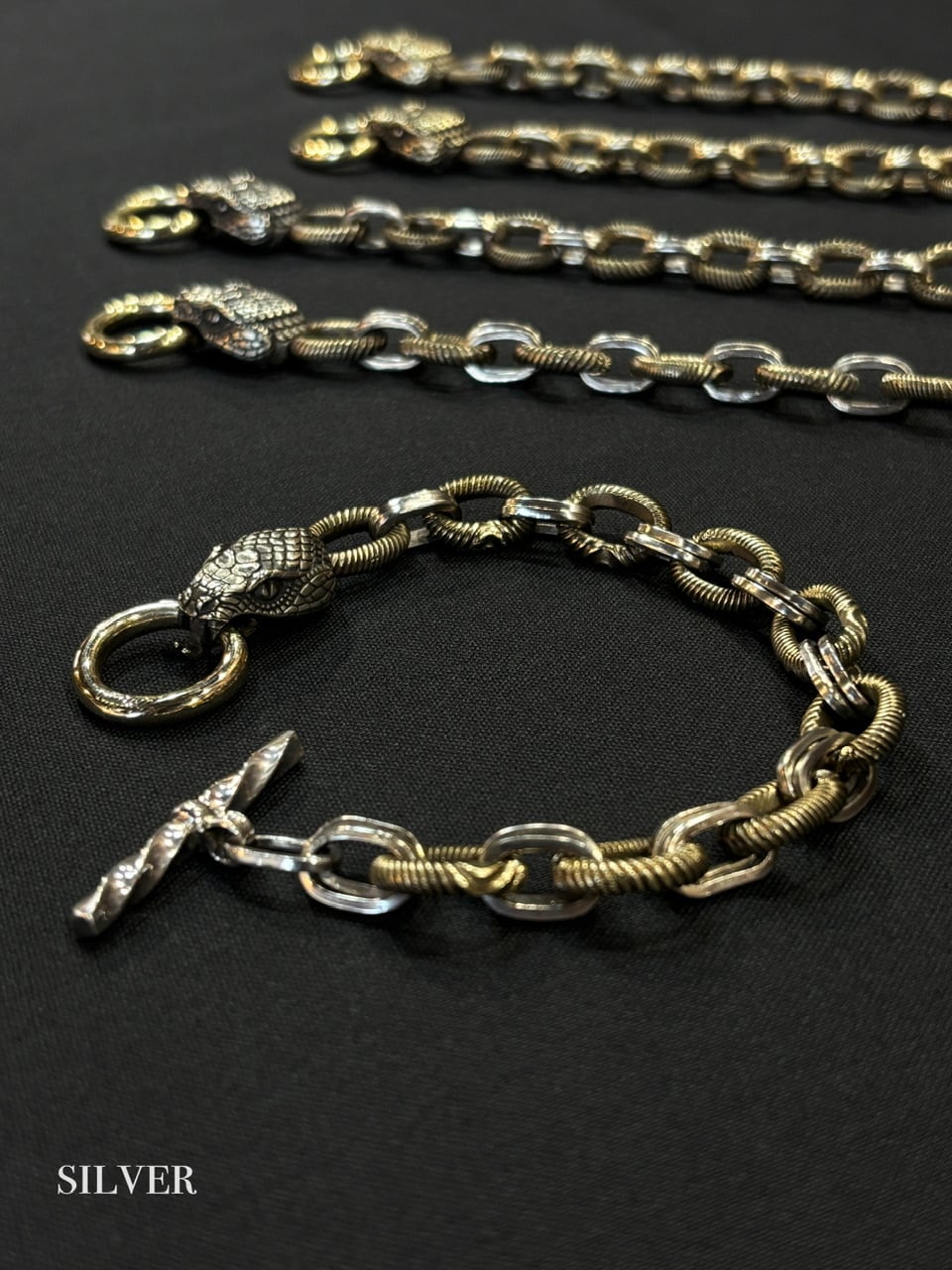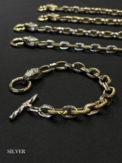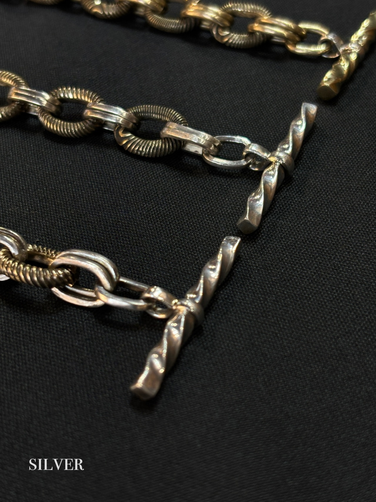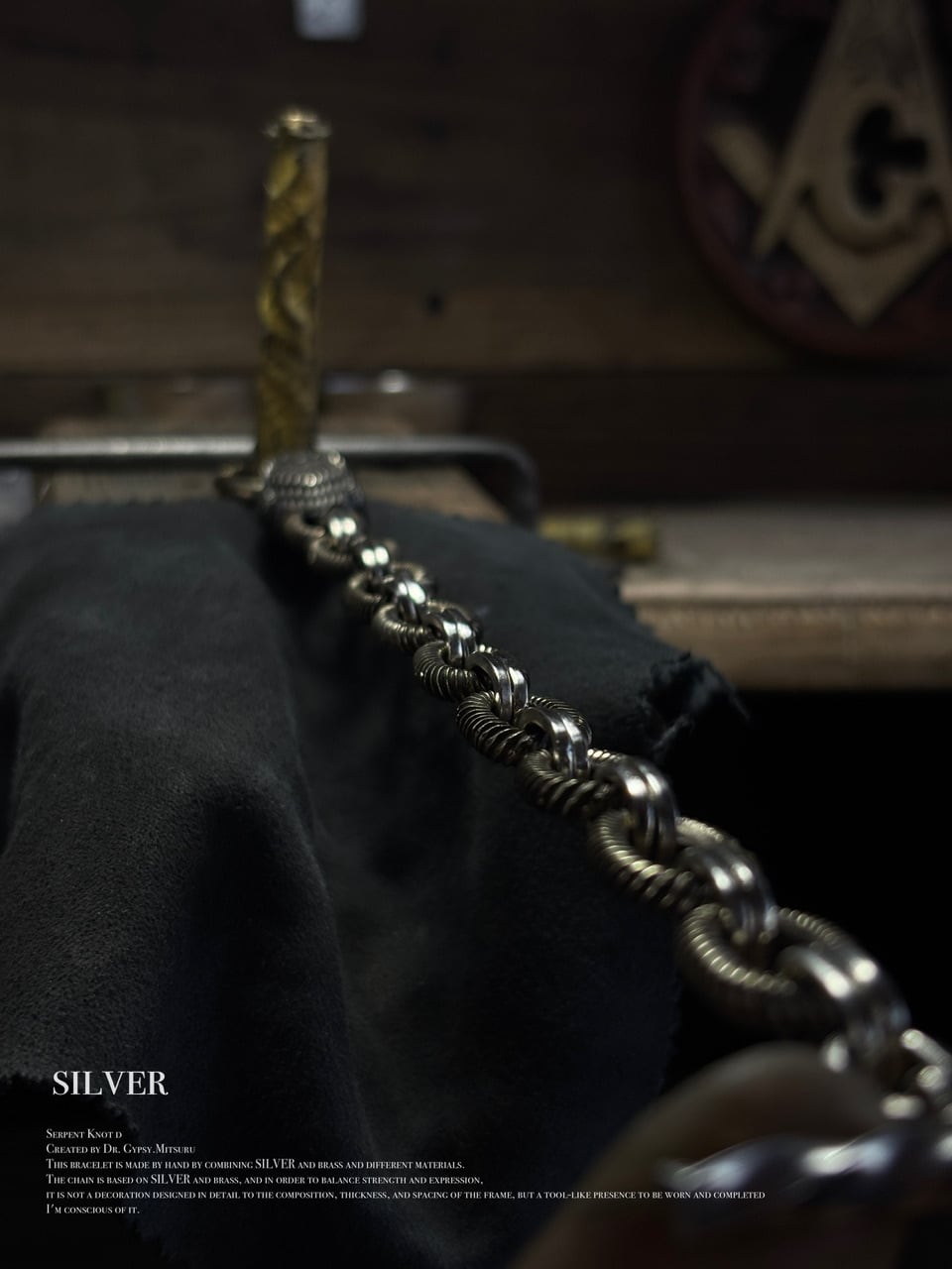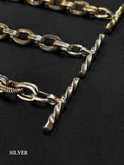 チェーンはSILVERと真鍮をベースに、強度と表情を両立させるため、コマの構成・太さ・間隔まで細かく設計